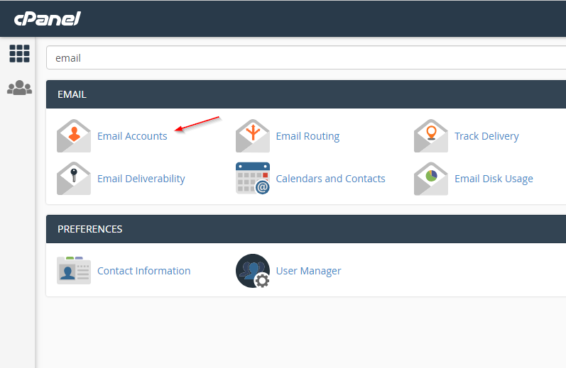 Truy cập trang quản lý hosting cPanel, tìm mục Email Accounts