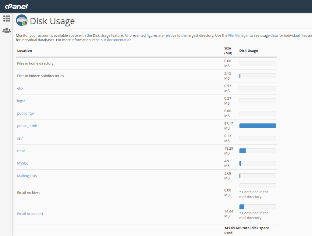 Kiểm tra tổng dung lượng đã sử dụng trên hosting cPanel