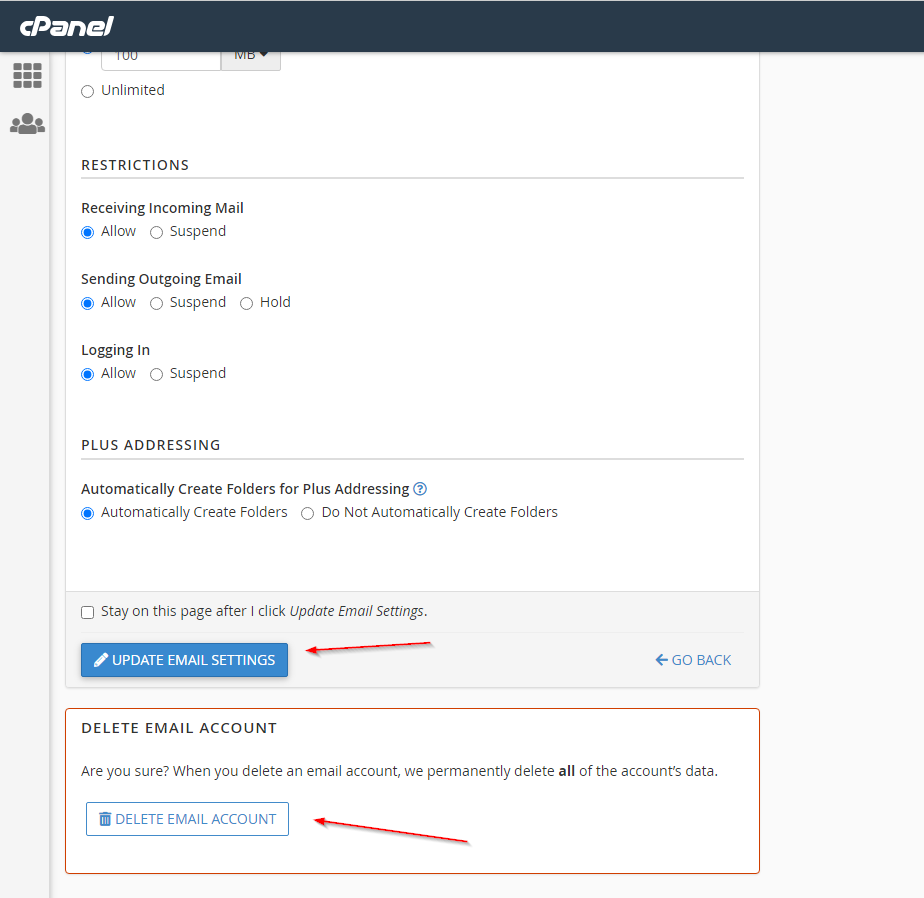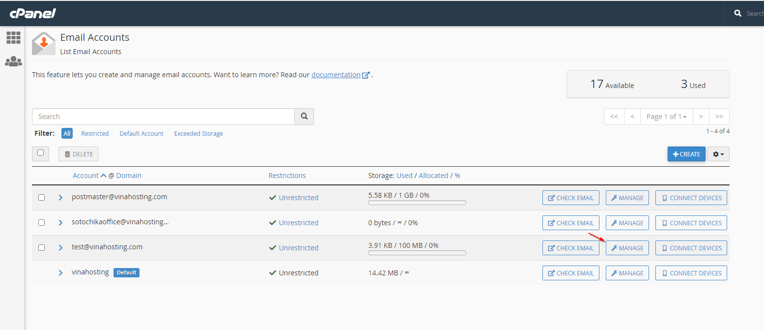 Thêm/Sửa/Xóa tài khoản email trên cPanel